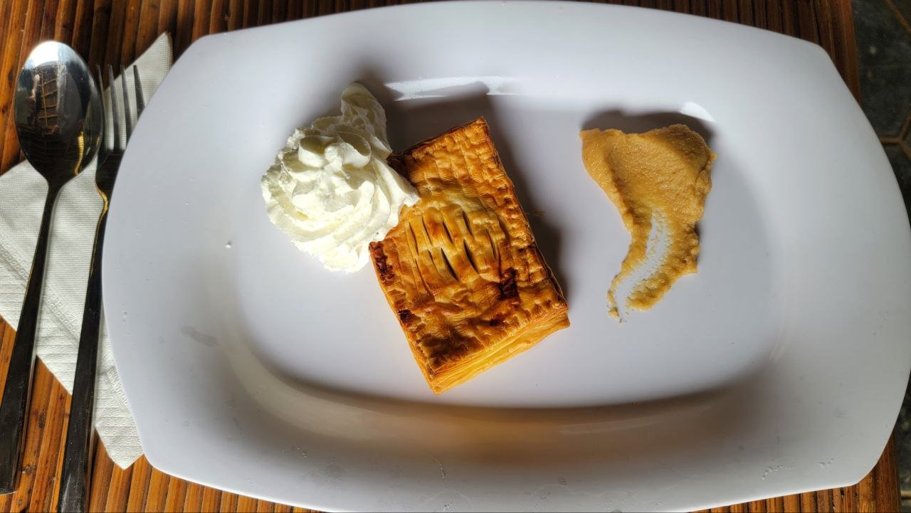 Fresh mango, pureed with cream and sweet milk, chilled and topped with whipped cream!